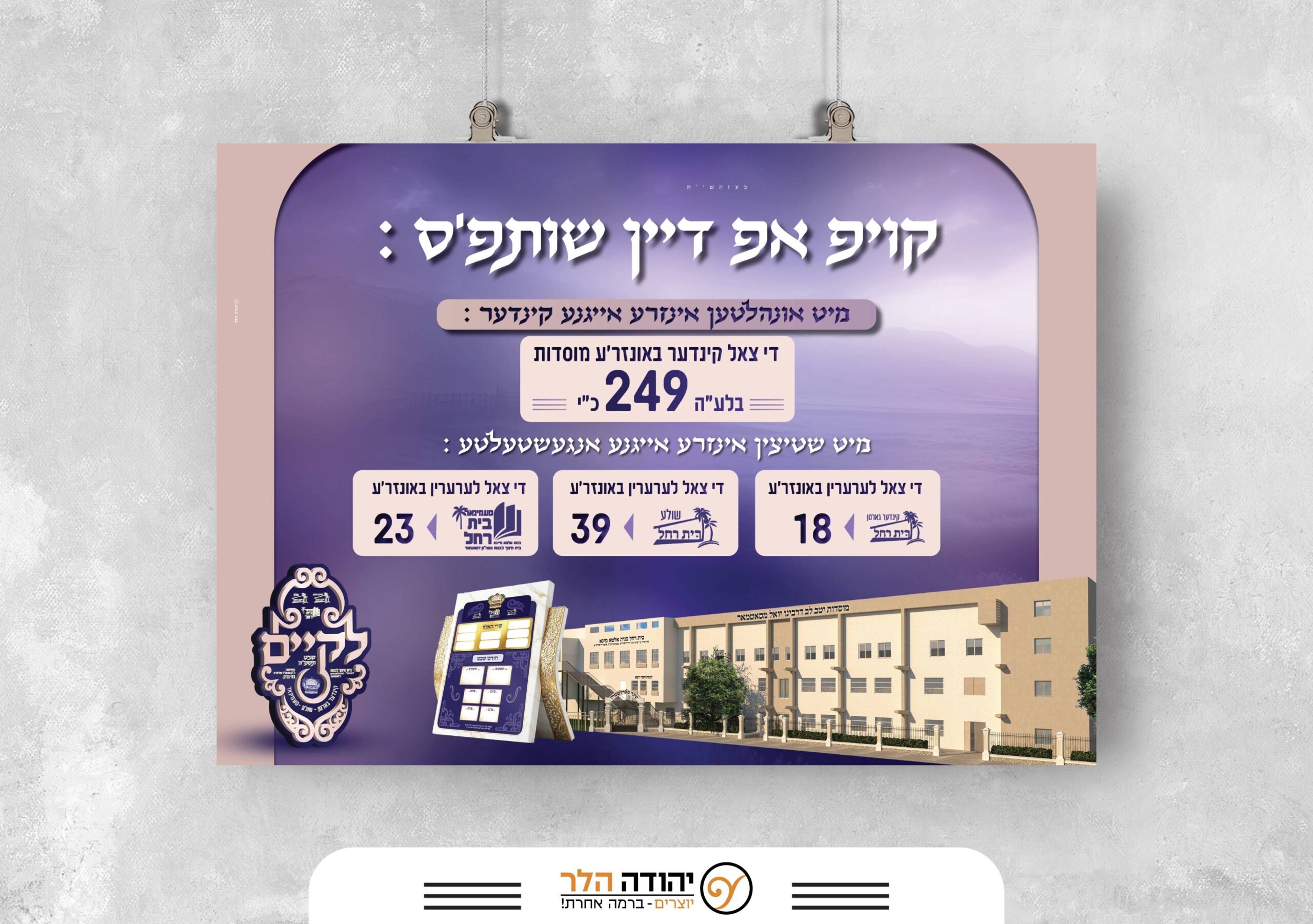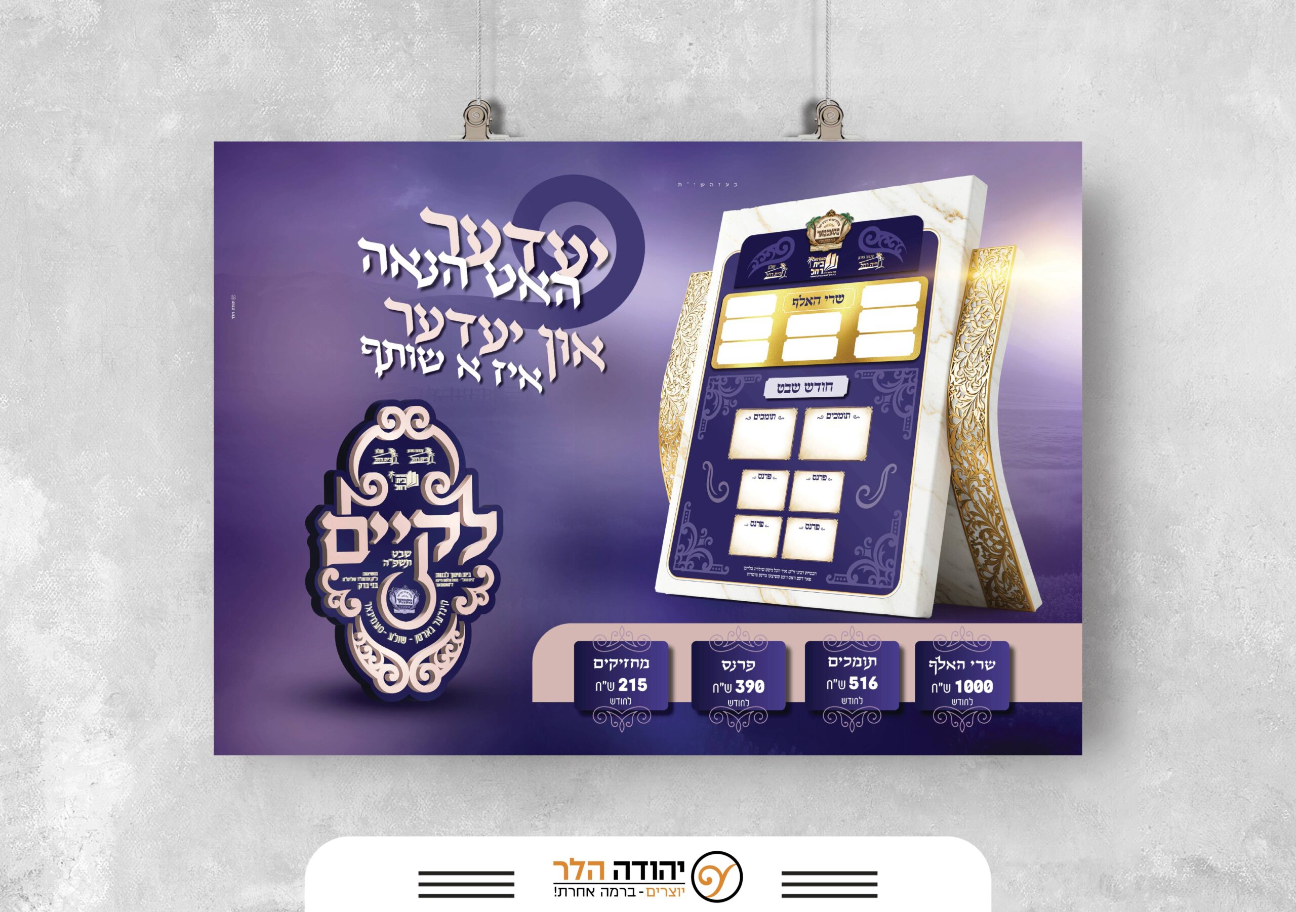 פרוספקט מהודר, שטרות התחייבות בעיצוב בוטיק, שילוט יוקרתי לכנסים רבי־הוד – הכל עטוף בעיצוב אחיד, מלוטש ומדויק – בלי לוותר על קו חסידי טהור.
